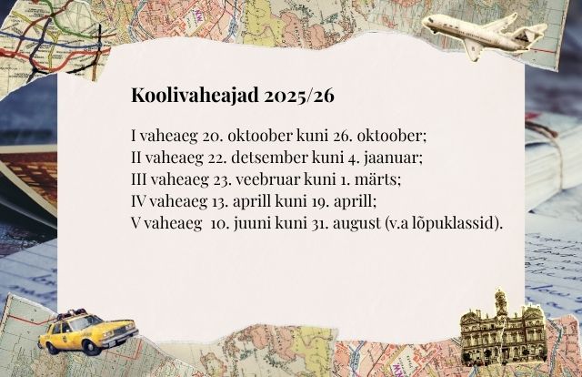 2025/2026 õppeaasta koolivaheajad